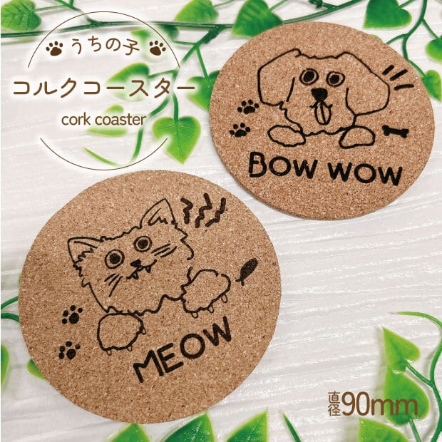 わんちゃんとネコちゃんのかわいいイラスト入りコースター♪ 材質:コルク(厚さ3mm) サイズ:タテ90mmヨコ90mm ●納期について● 5営業日以内の発送となります。 お使いのモニター設定、お部屋の照明等により実際の商品と色味が異なる場合がございます。